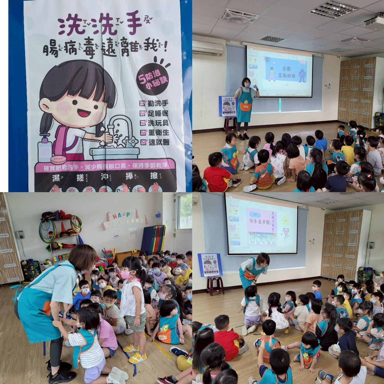 今日進行腸病毒宣導,每個孩子的概念都很棒,也會確實回答洗手五步驟及正確的洗手時機