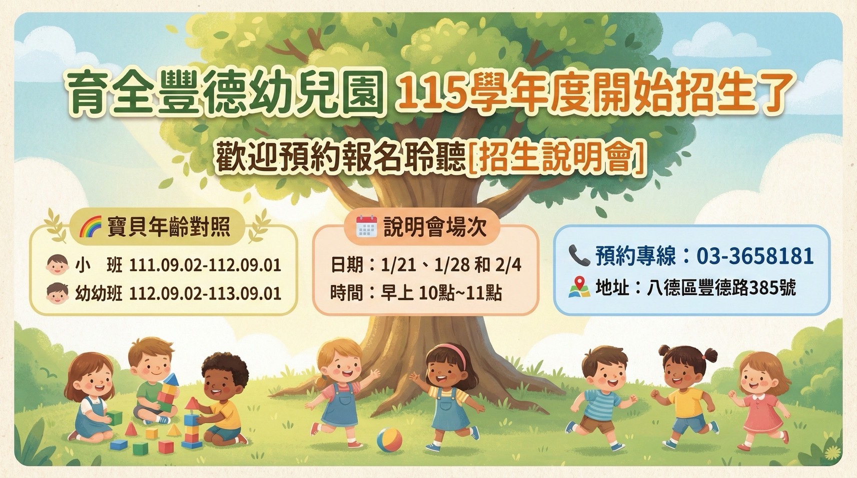 育全豐德幼兒園 招生說明會熱烈報名中 🚀