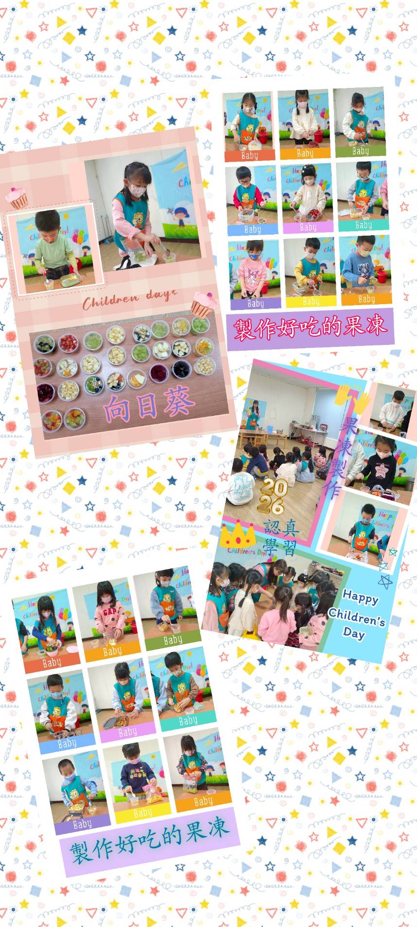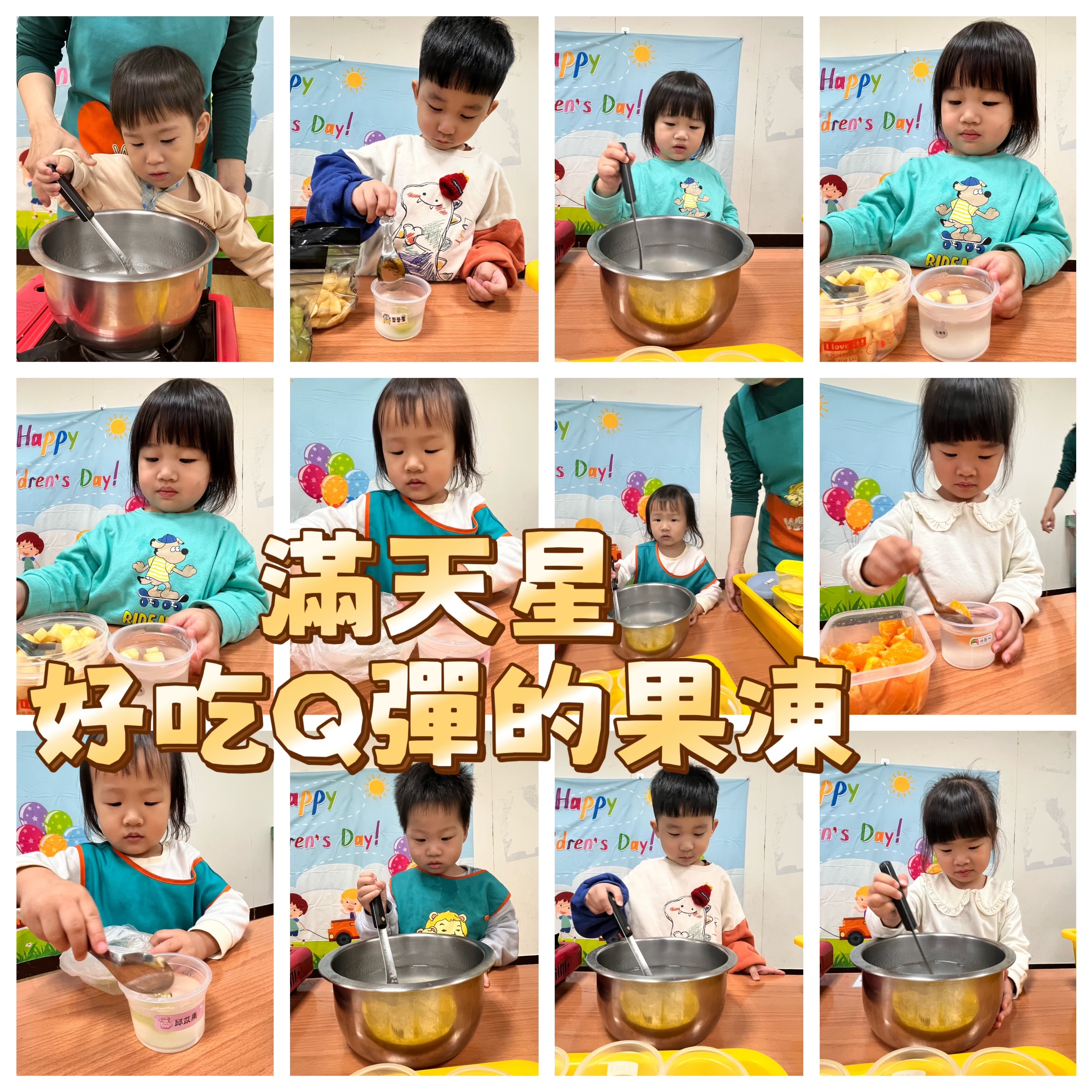 這個專屬於孩子的特別日子裡,校園裡處處洋溢著歡笑聲!為了慶祝兒童節,我們今天特別規劃了**「甜蜜手作工坊」**,讓寶貝們化身小小廚神,親手製作充滿驚喜的甜點。現在,就讓我們一起回顧今天的精彩時刻吧!